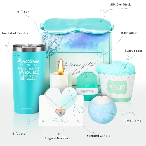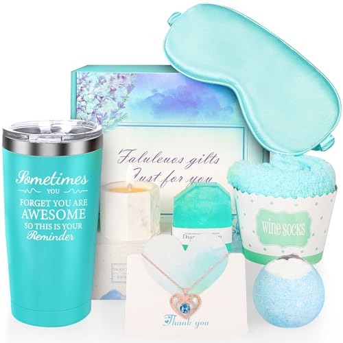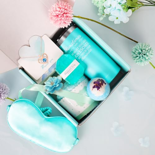 【8 Distinctive Presents For Girls】Every reward field Comprises: 1* 20 oz insulated tumbler,1* Bathtub Cleaning soap,1* Bathtub Bomb,1*Scented Candle,1*Fuzzy Socks,1*Silk Eye Masks,1*Elegant Necklace,1*Reward Card. All Packed in a stunningly wrapped in a present field