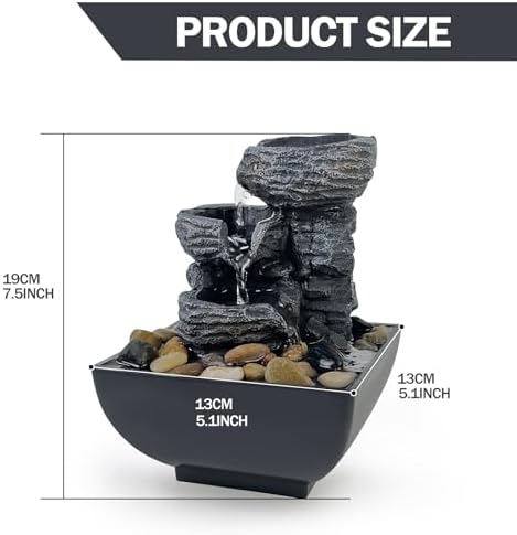 Dimension: Approx. 7” x 5” x 5”. The water flows from the highest to the rock mattress, just like the sound of the waterfall. It’s appropriate for any desk in your house and provides ambiance to your front room, workplace.