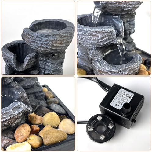 Ornamental Tabletop Fountain – Convey a chilled, zen, and ornamental really feel to any room, 3 tiers of water merging right into a small waterfall, below the ornament of coloured lights, the fountain provides magnificence and tranquility. Good for adorning any desk, desk, bed room, rest room or self-importance within the room.