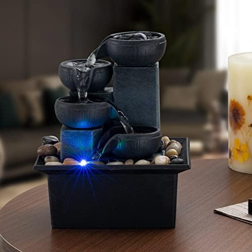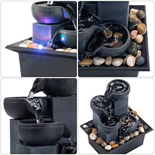 Mini Tabletop Fountain: The beautiful waterfall fountain is illuminated by colourful LED lights, offering you with a peaceable and soothing surroundings, whereas listening to the light sound of the rippling water will calm your thoughts.
