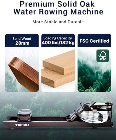 【Premium Stable Oak Development】 TOPIOM water rowing machine is made from high-quality stable oak licensed by FSC. It presents distinctive sturdiness and stability, supporting a most load of 400 lbs/182 kg. With a person peak capability as much as 77 inches/195 cm, it’s appropriate for practically each member of the family.
